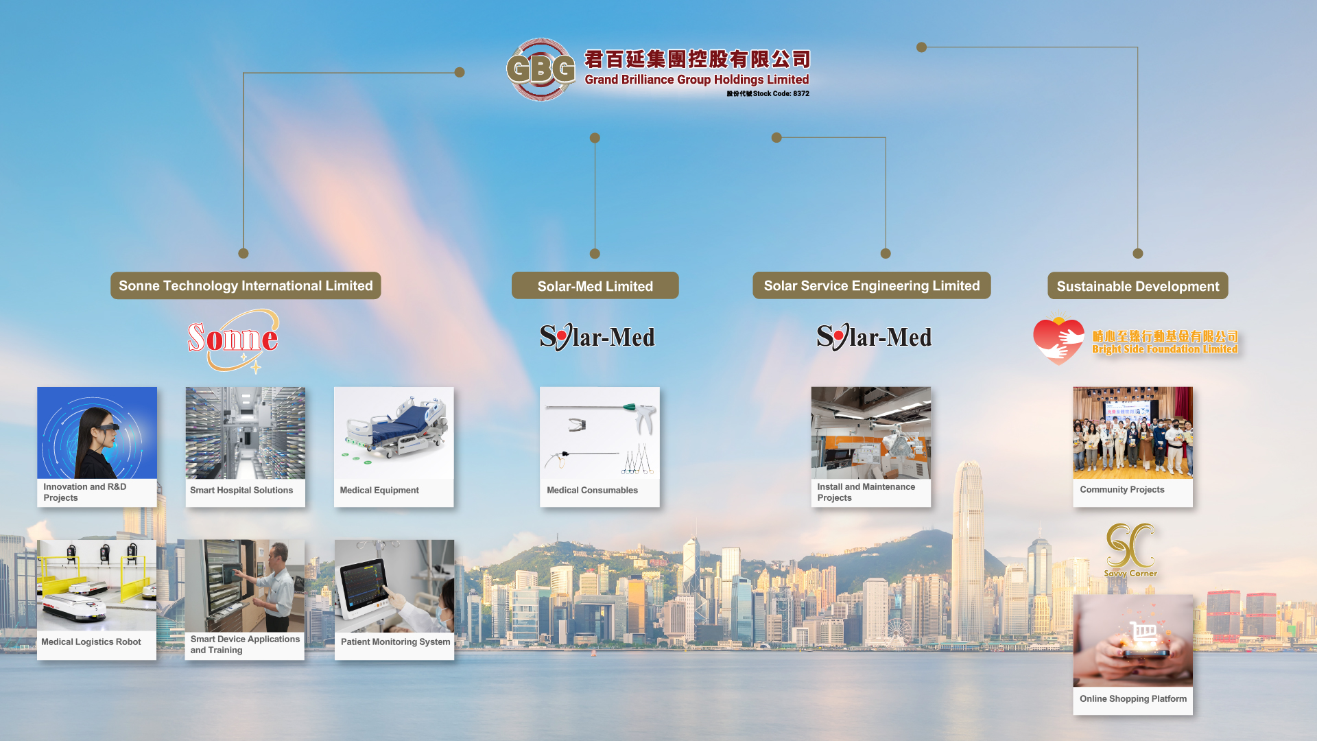 The Group comprises divisions for medical device distribution, innovative technology research and development, business development, and social responsibility. These divisions collaborate to enhance healthcare and corporate social responsibility, contributing to the well-being of Hong Kong and the Greater Bay Area.